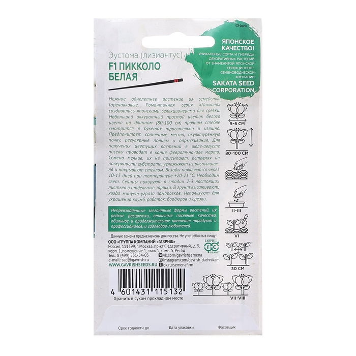 Семена Эустома "Пикколо", ц/п, белая, F1, 4 шт.