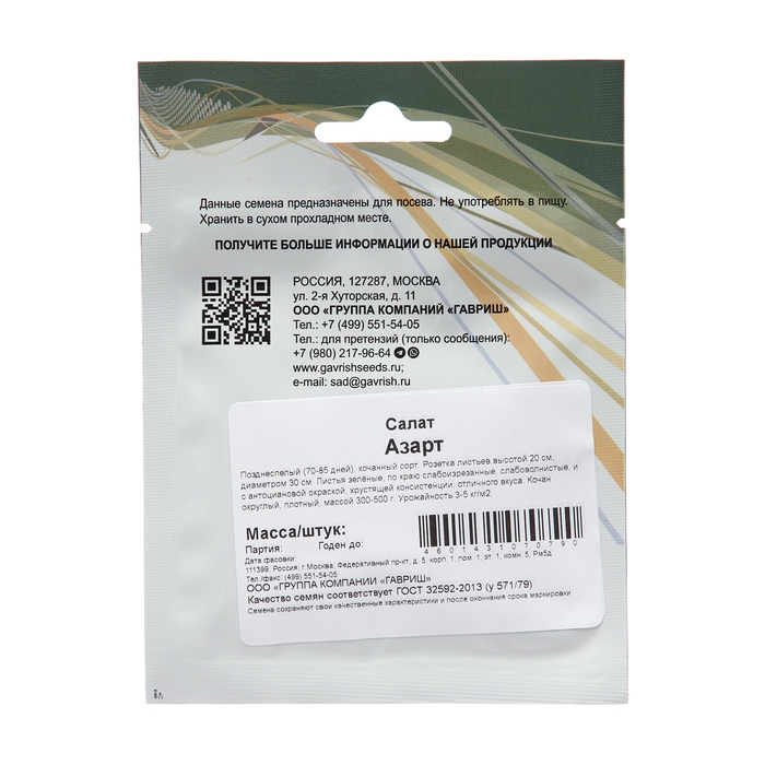 Семена Салат айсберг Таймс, «Всхожесть 99%», 7 шт.