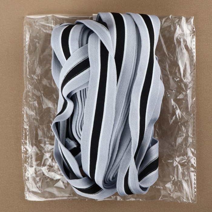 Тесьма трикотажная лампас 30 мм, 9,1 ± 0,5 м, цвет серый/чёрный