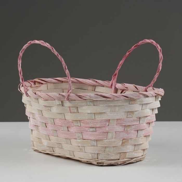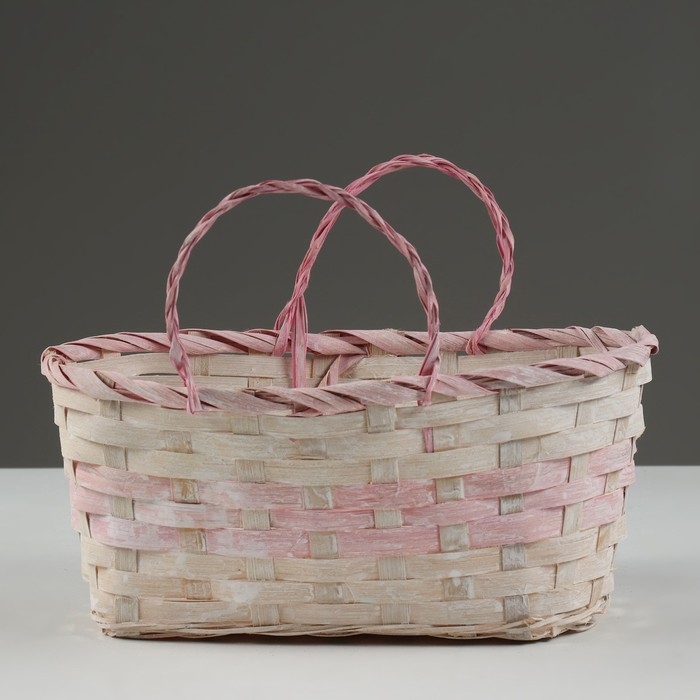 Корзина плетеная, D25 х 18 х 11/19 см, розовая, бамбук