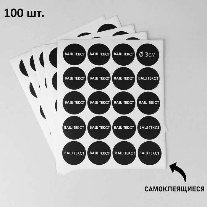 Меловые ценники «Круг» самоклеящиеся, цвет чёрный, набор 5 листов 3×3 см
