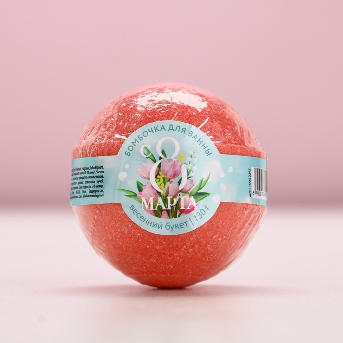 Бомбочка для ванны «С 8 Марта!», 130 г, аромат весеннего букета, ЧИСТОЕ СЧАСТЬЕ