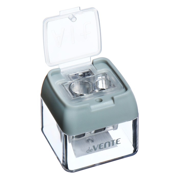 Точилка для карандашей "deVENTE. Keyboard Keys" 38x36x35 мм, 2 отверстия пластмассовая с контейнером, каждая с индивидуальной маркировкой, в картонном дисплее, ассорти.