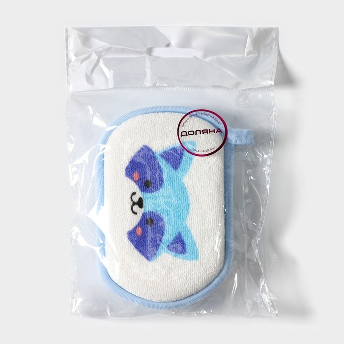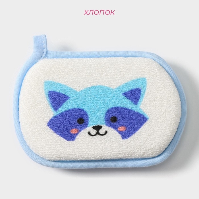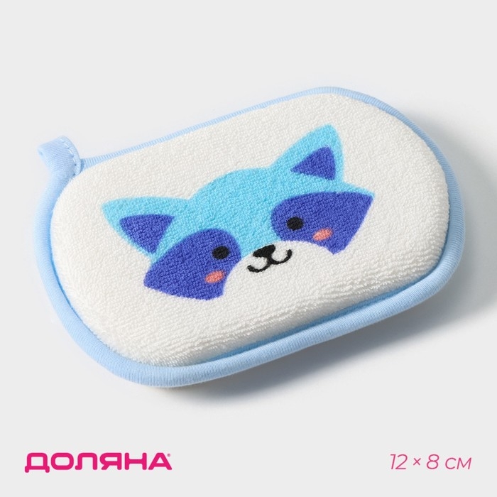 Мочалка детская для купания Доляна «Енот», детская, 12×8 см, голубая