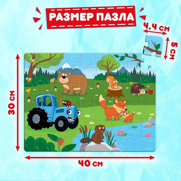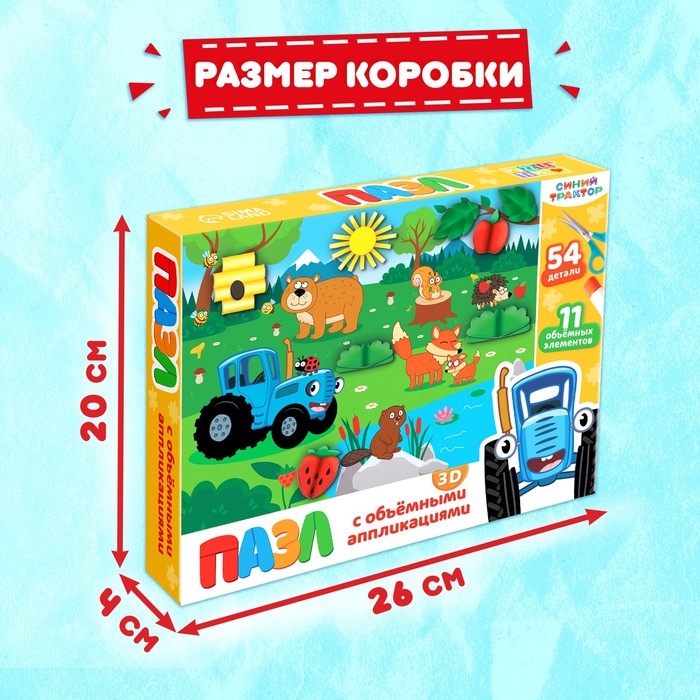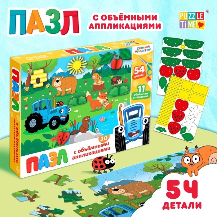 Пазл с аппликациями «Синий трактор на лесной опушке», 54 детали