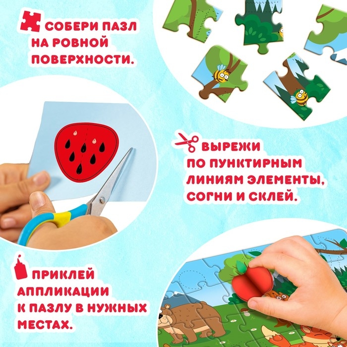- Украсьте пазл получившимися аппликациями.