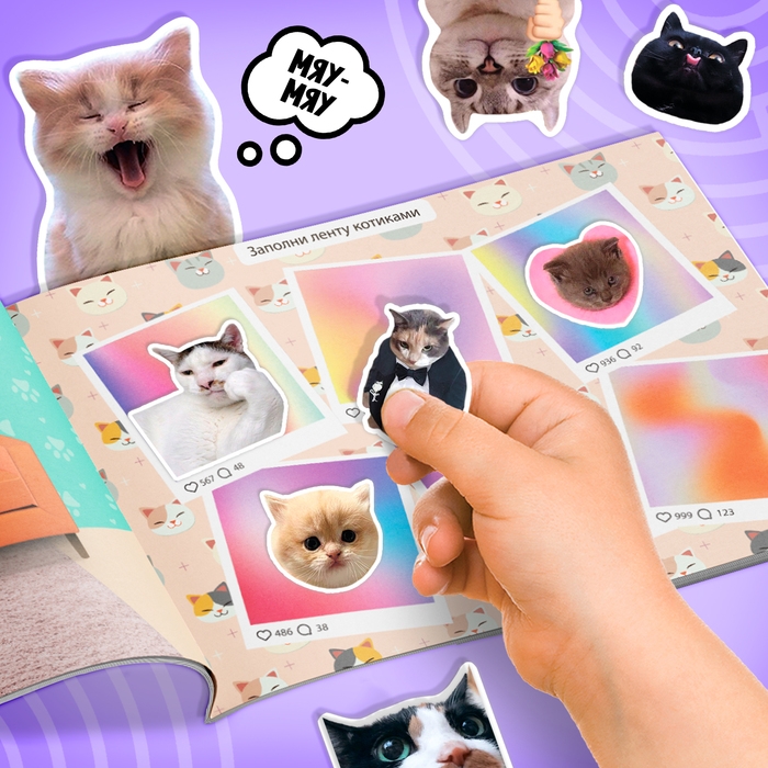 - В книжке вас ждут 6 страниц с наклейками, которые смогут украсить листы альбома, помогут посмеяться над разными жизненными ситуациями и поднимут настроение.