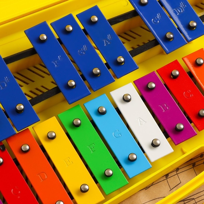 Музыкальный инструмент Металлофон Music Life, 25 тонов, футляр, 2 палочки, желтый