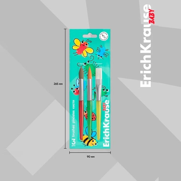 Набор кистей синтетика и пони 3 штуки, ErichKrause "Baby" для творчества, в блистере