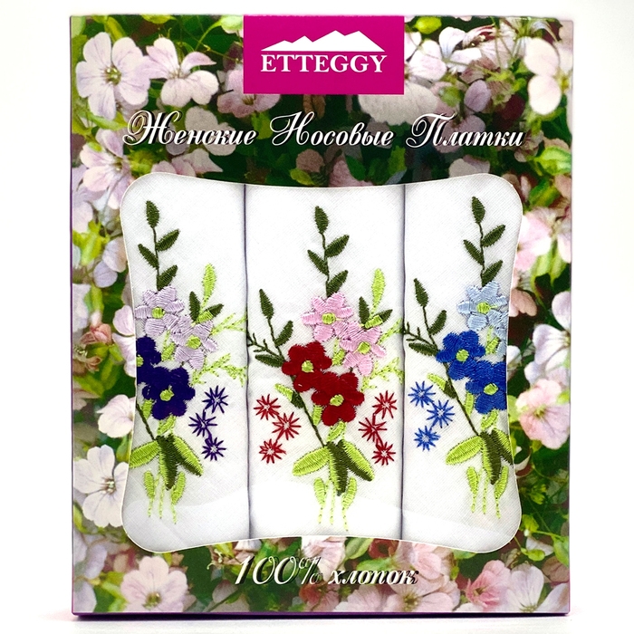 Набор женских носовых платков в коробке Etteggy PV61 28x28см 3шт, МИКС, батист 81г/м, хл100%