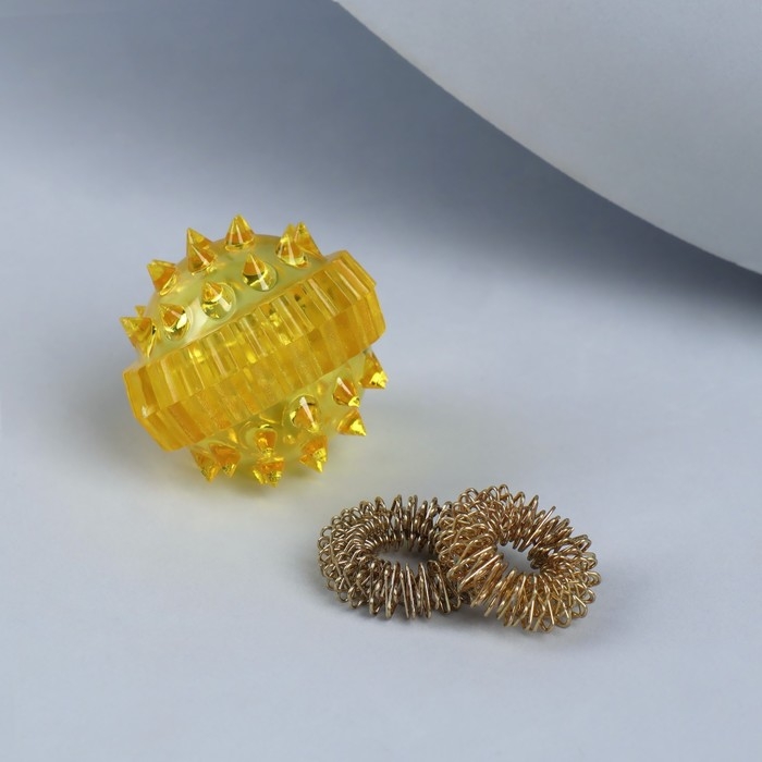 Массажёр «Су-джок», d = 3,5 см, с 2 кольцами, цвет жёлтый