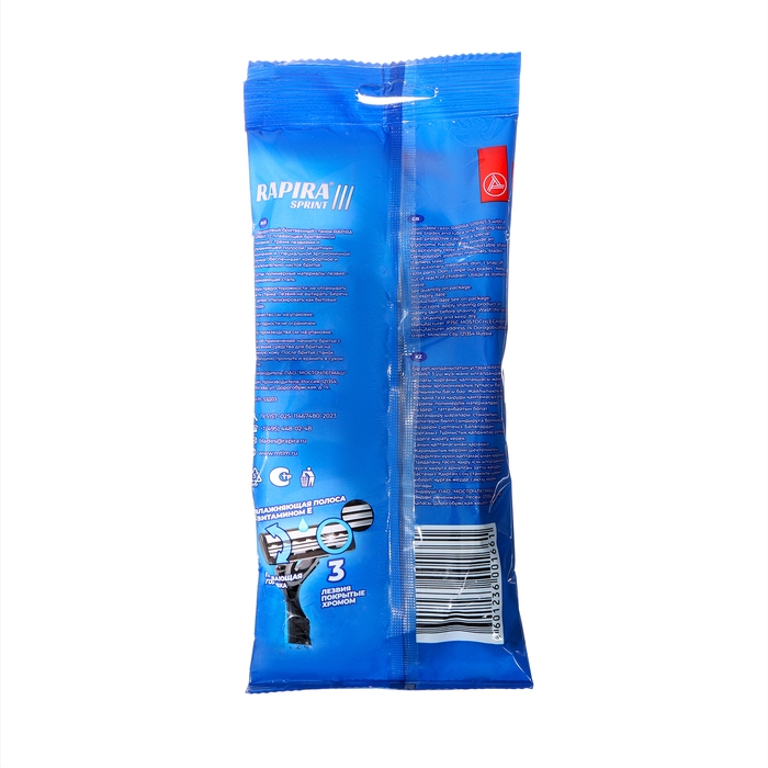 Одноразовый бритвенный станок "Rapira Sprint 3" с тремя лезвиями и увлажняющей полосой, 5 шт 1034005