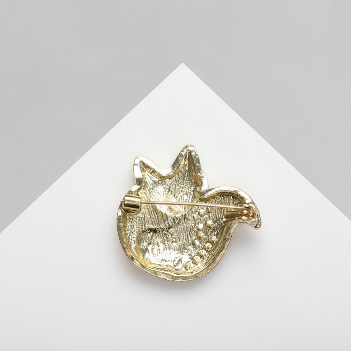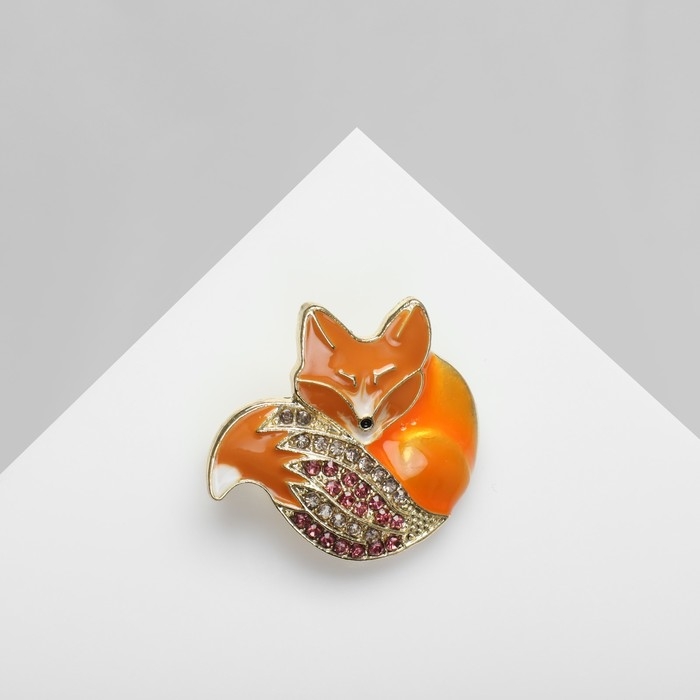 Брошь «Лиса» блестящая, цвет бело-розовый в золоте
