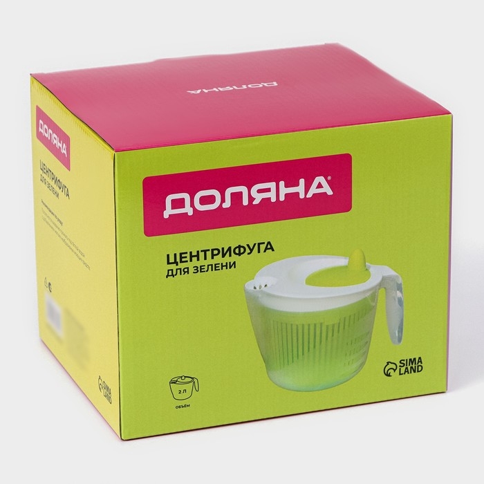 Центрифуга для сушки зелени Доляна Fresh cook, 2 л, пластик, цвет белый/зелёный