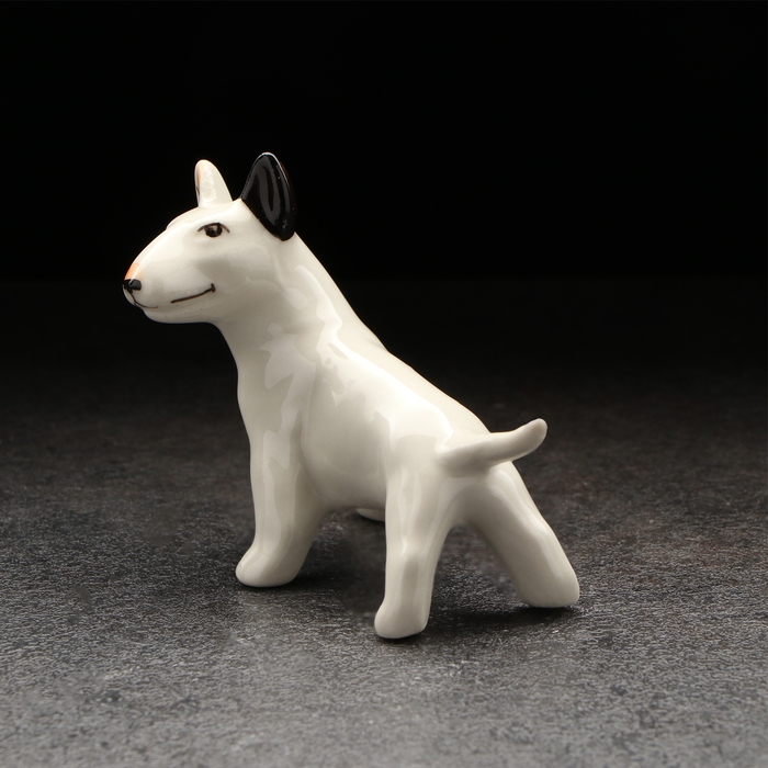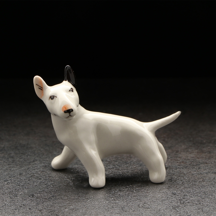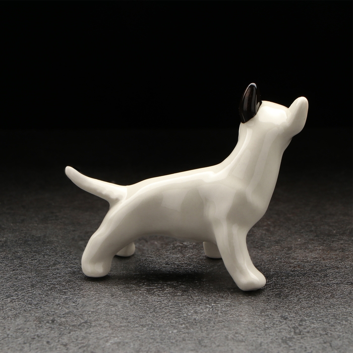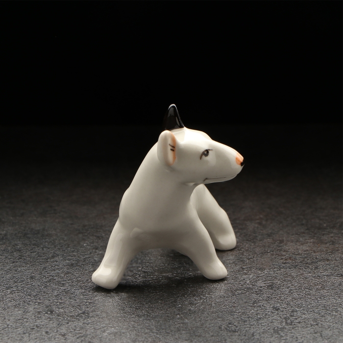 Статуэтка фарфоровая "Бультерьер в стойке", белый, чёрное ухо, 7 см