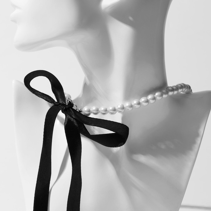 Чокер «Новый стиль» жемчужины с завязкой, цвет черно-белый 35 см