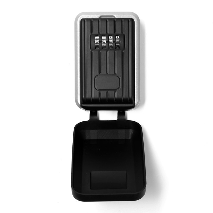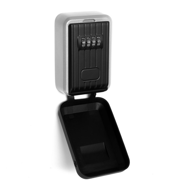 Сейф-ключница кодовая ТУНДРА, металлическая, с защитной крышкой, цвет серый/черный