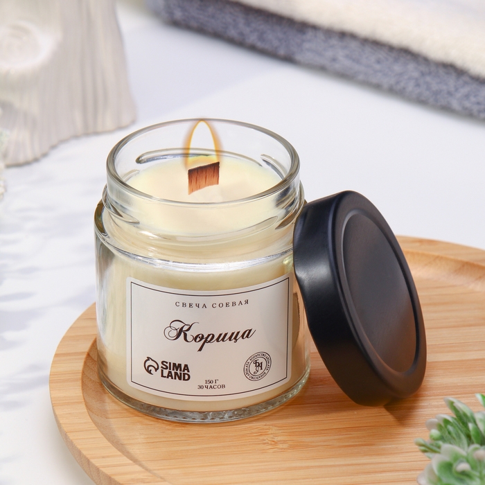 Свеча ароматическая из соевого воска в банке, 150 г, корица