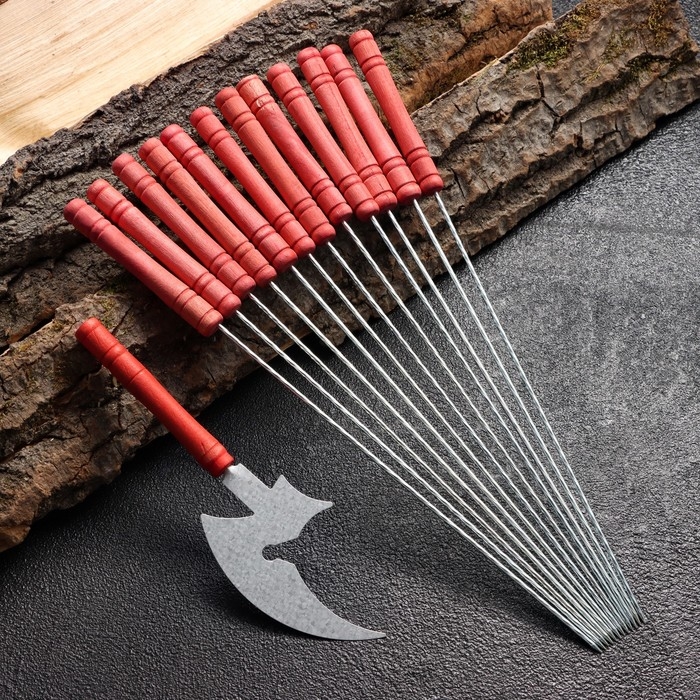 Набор шампуров-спиц 12 шт, с ножом, рабочая часть - 21 см, ширина - 2 мм, толщина - 2 мм