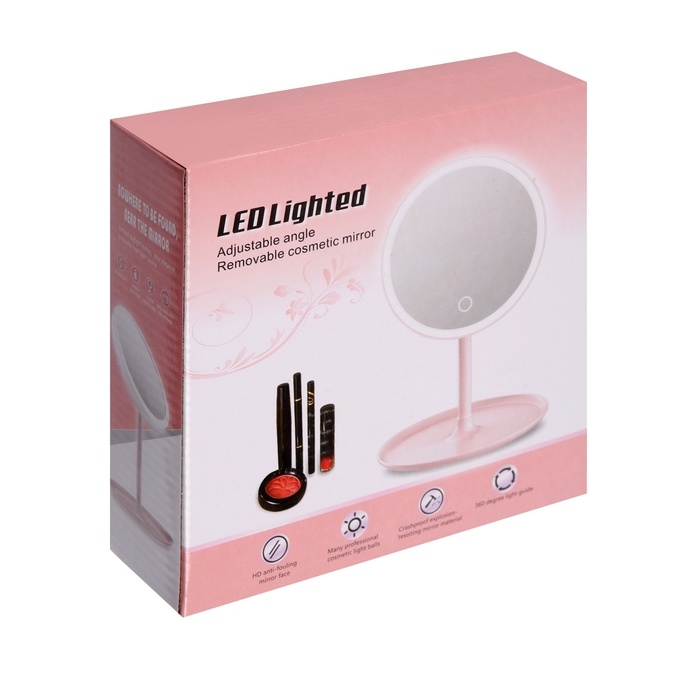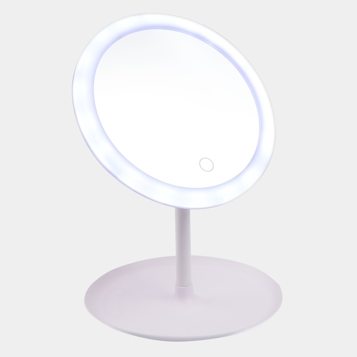 Зеркало KZ-09, подсветка, настольное, АКБ, 2500 мАч, 3 режима, поворот 90°, белое
