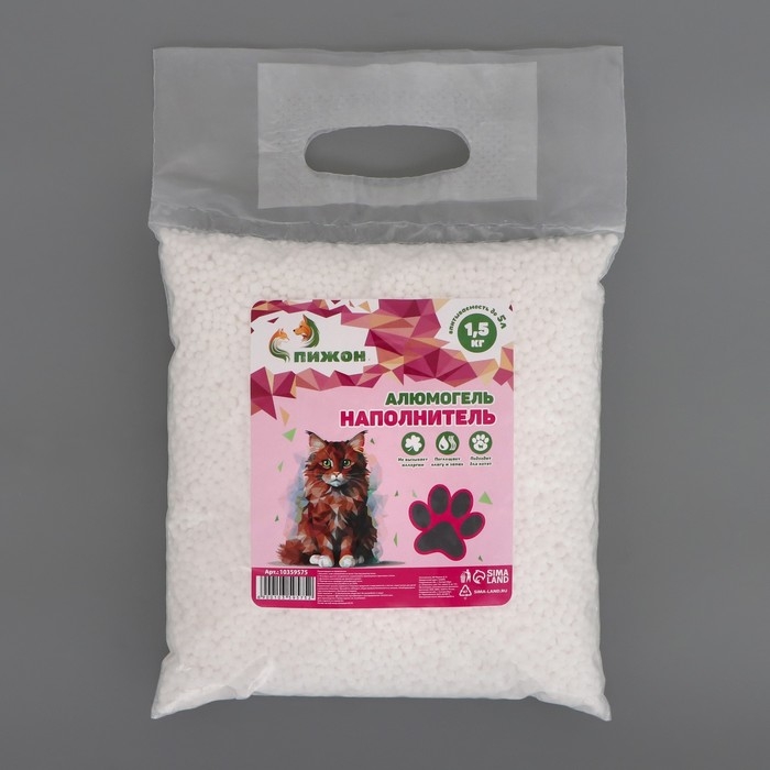Наполнитель для кошачьих туалетов "Пижон" алюмогель 1,5 кг впитываемость до 5 л