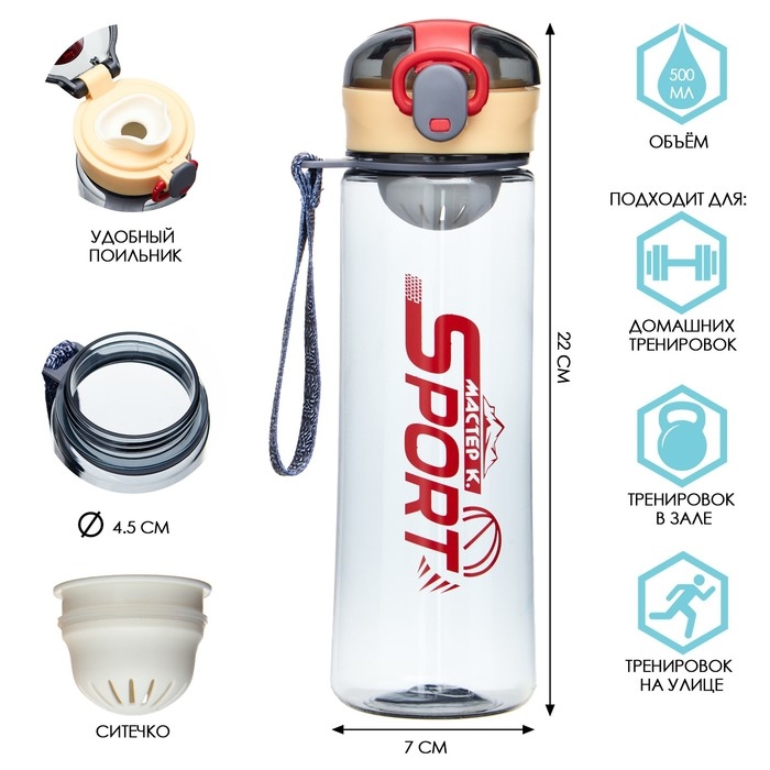 Бутылка для воды, 500 мл, SPORT, с поильником