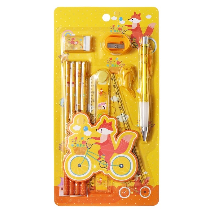 Набор канцелярский Calligrata 9 предметов, 4 чернографитных карандаша, точилка, ластик, линейка, ручка, насадка-тренажер, жёлтый