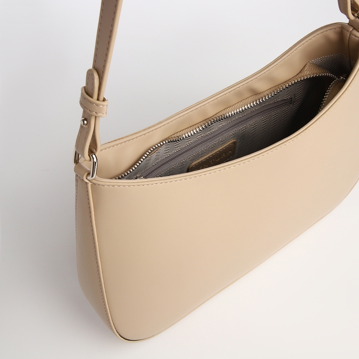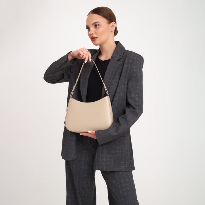 - Элегантный дизайн: бежевый цвет и строгие линии делают сумку универсальным аксессуаром для любых случаев жизни.