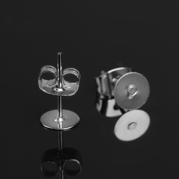 Основы для пусет с заглушками, площадка 6 мм, пара, цвет серебро
