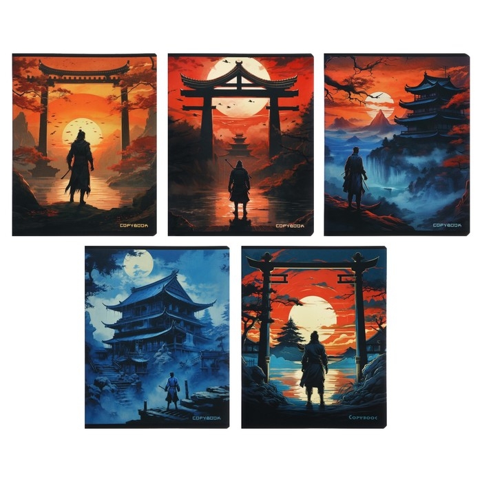 Тетрадь 48 листов в клетку на скрепке "Самурай", обложка мелованный картон, твин-лак, УФ-лак, блок офсет, МИКС