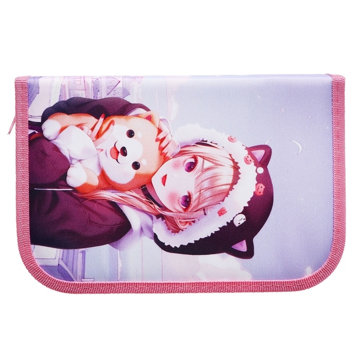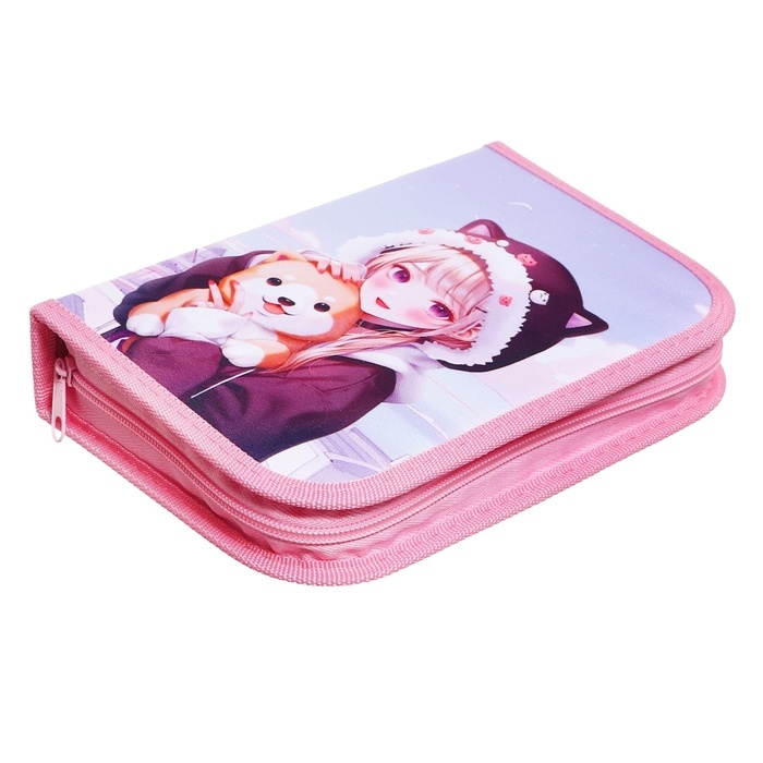 Пенал 3 секции, вкладка внутри, 140 х 210 х 40 мм, тканевый, Calligrata TOP Block "Аниме друзья"