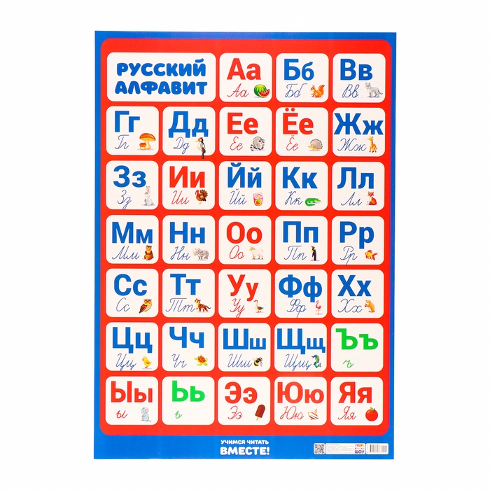Плакат "Алфавит русский" синяя рамка, кртон, А2