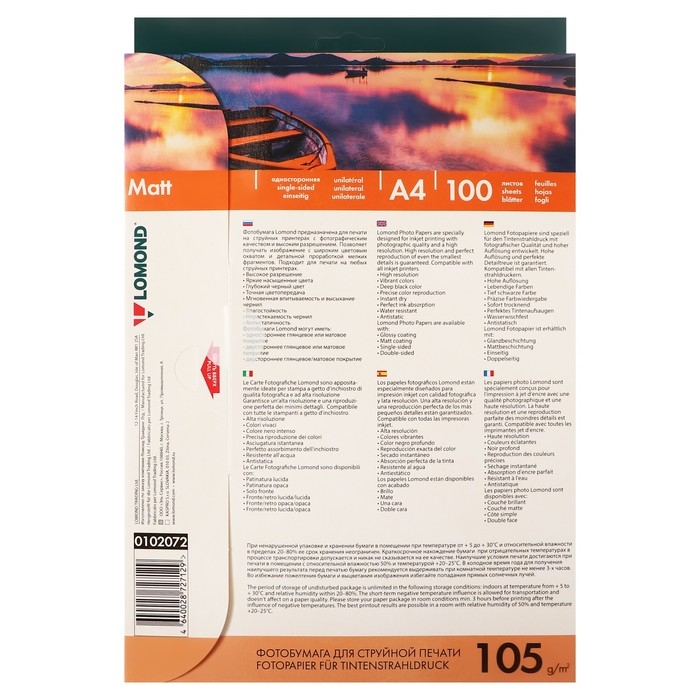 Фотобумага для струйной печати А4, 100 листов LOMOND, 105 г/м2, односторонняя, матовая
