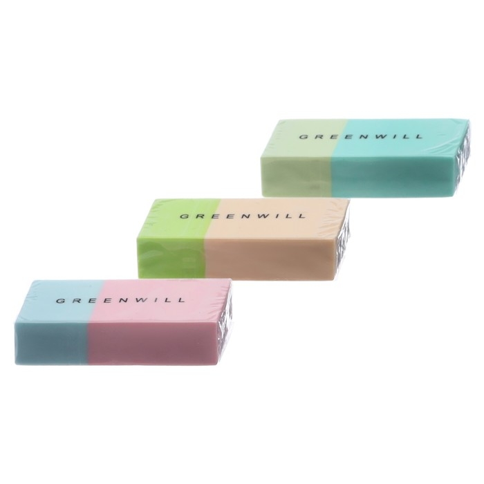 Набор Ластик прямоугольный, 3 штуки, МИКС