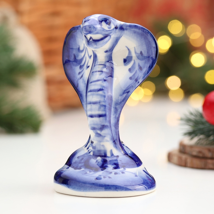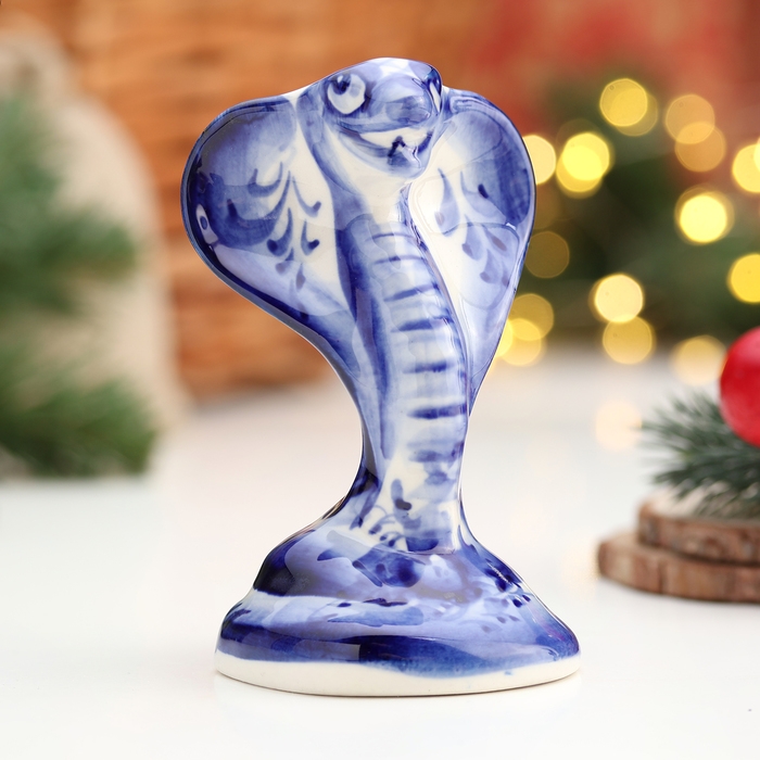 Сувенир символ года "Кобра", большая, гжель, 11х7 см
