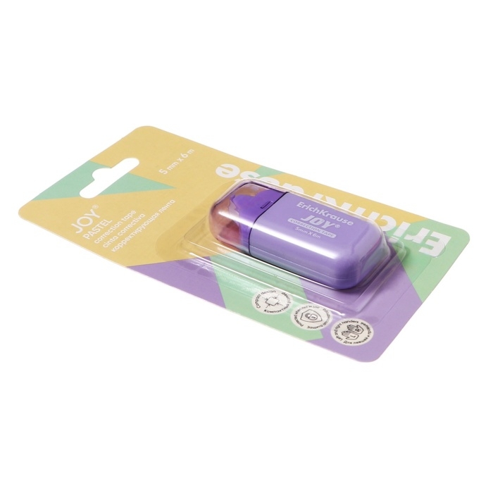 Корректирующая лента 5 мм х 6 м, ErichKrause JOY Pastel, компактный размер, защитный колпачок, микс, блистер