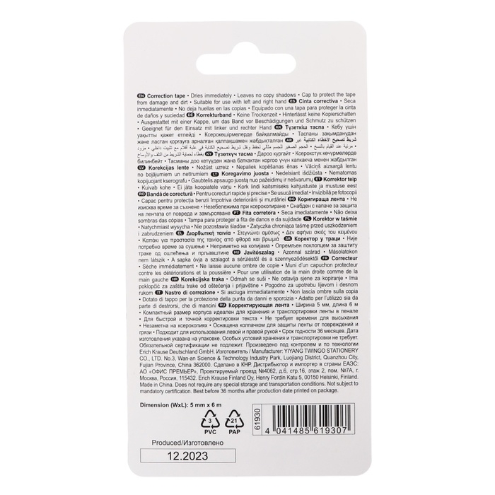Корректирующая лента с яркими неоновыми цветами корпуса имеет компактный размер для удобного хранения в школьном пенале, а также защитный колпачок, предотвращающий повреждение и загрязнение ленты. Идеальна для аккуратного и быстрого исправления строчного текста. Показывает отличный результат на всех типах и цветах чернил. На основе растворителя. Не требует времени для высыхания и позволяет сразу писать поверх корректировки. Подходит для использования левой и правой рукой. Товар поставляется в нескольких вариантах цвета/дизайна без возможности выбора.