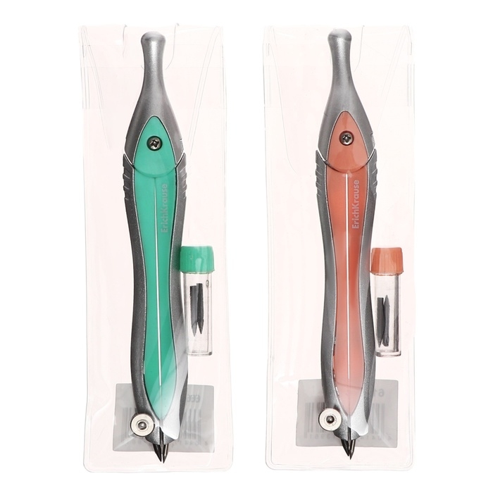 Циркуль металлический, Erich Krause S-Cool, 120 мм, максимальный радиус 18 см, пластиковый чехол с линейкой, европодвес, МИКС