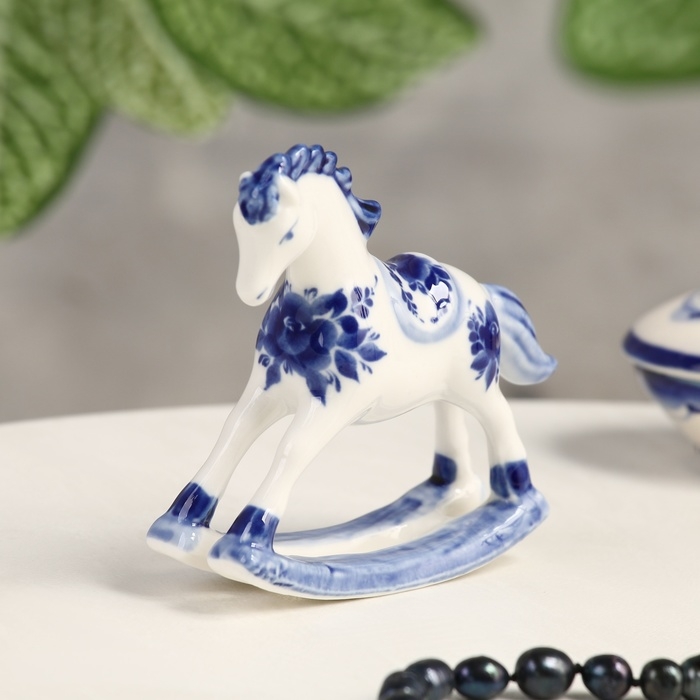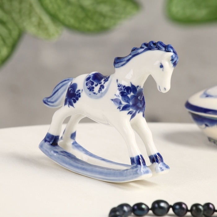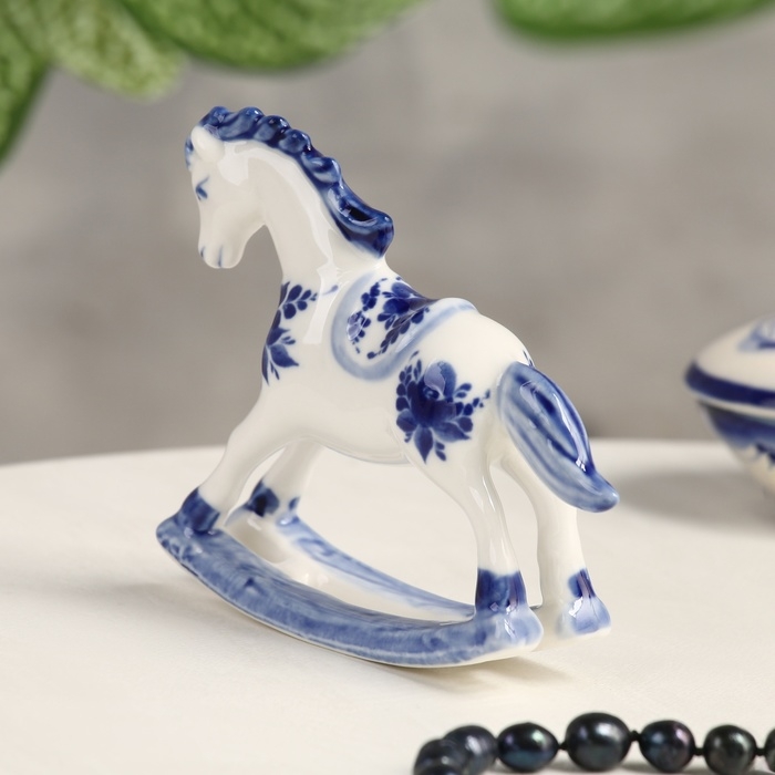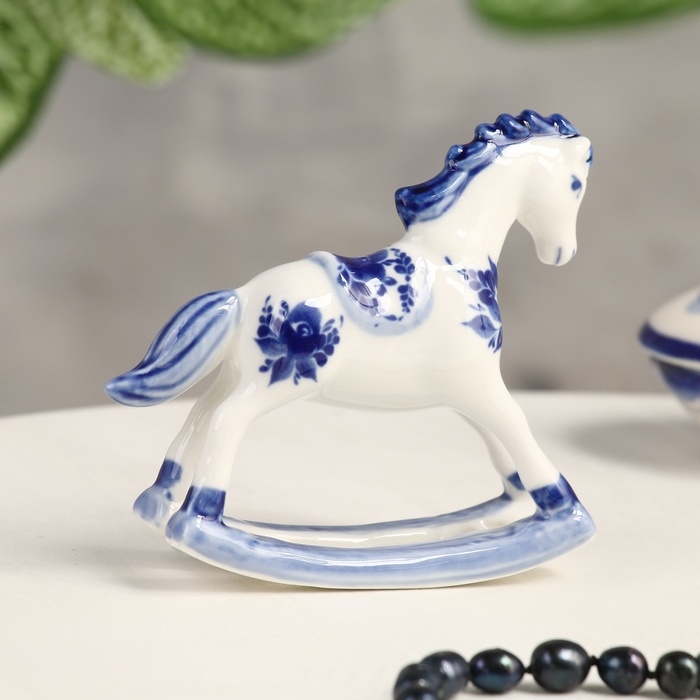 Сувенир гжель «Конь-качалка», бело-синий,керамика,