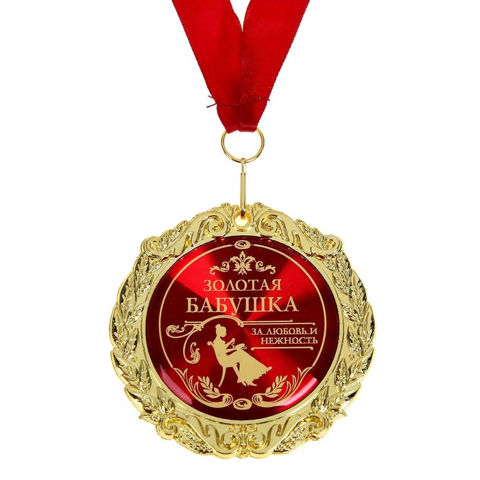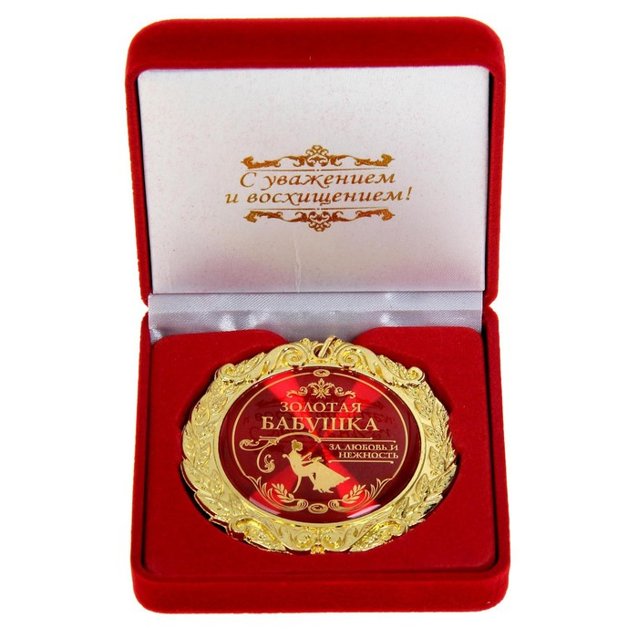 Медаль в бархатной коробке «Золотая бабушка», d=7 см.