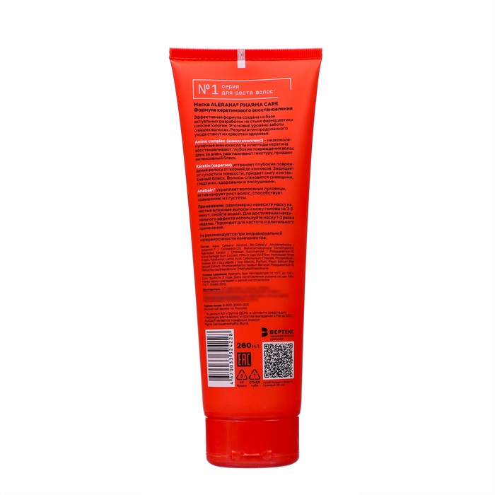 Маска для волос Alerana Pharma care с кератином восстанавливающая, 260мл