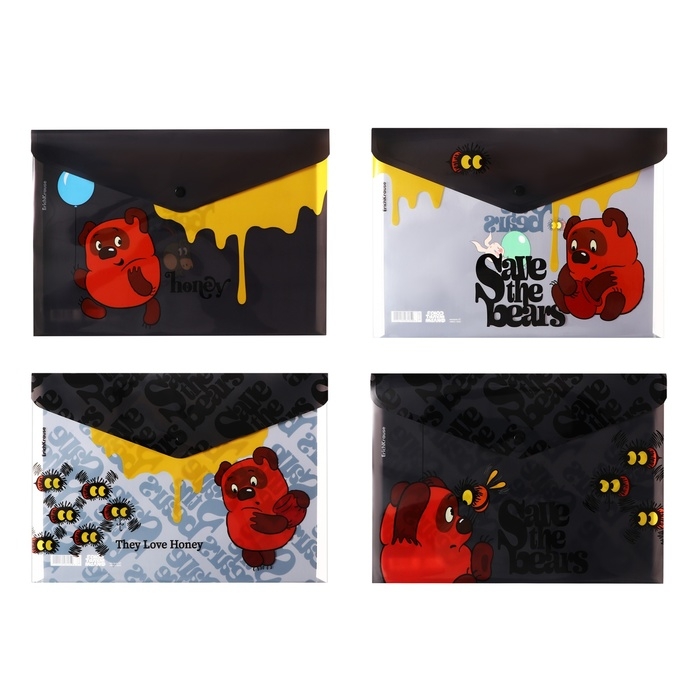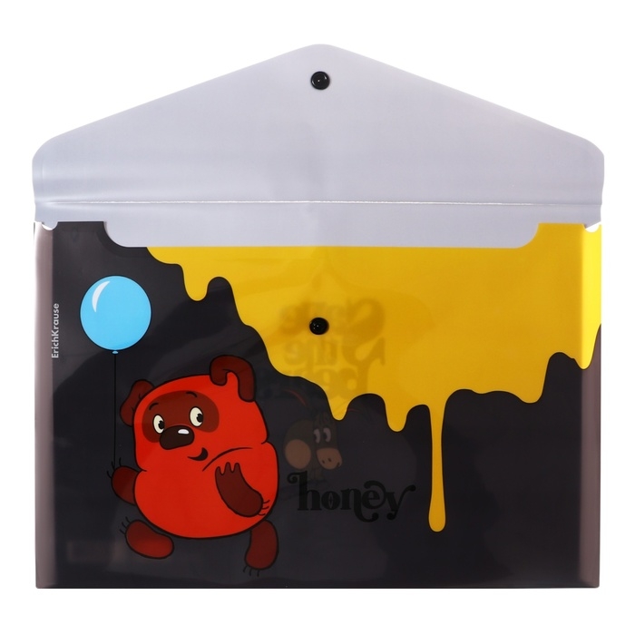 Папка-конверт на кнопке А4, 160 мкм, ErichKrause "Винни-Пух", полупрозрачная, глянцевая, микс
