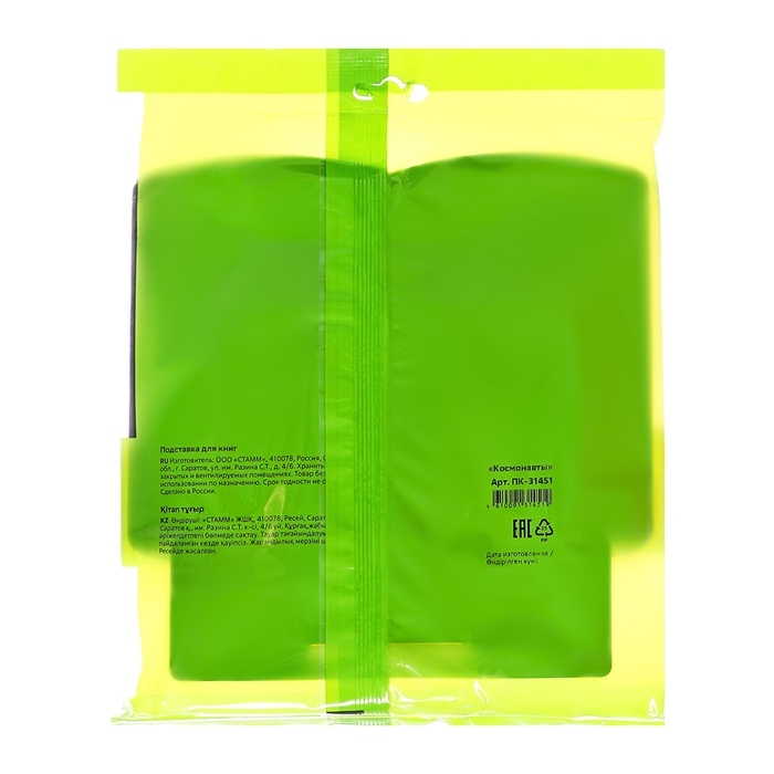 Подставка для книг Стамм "Космонавты", 200 x 200 x 25 мм, пластиковая