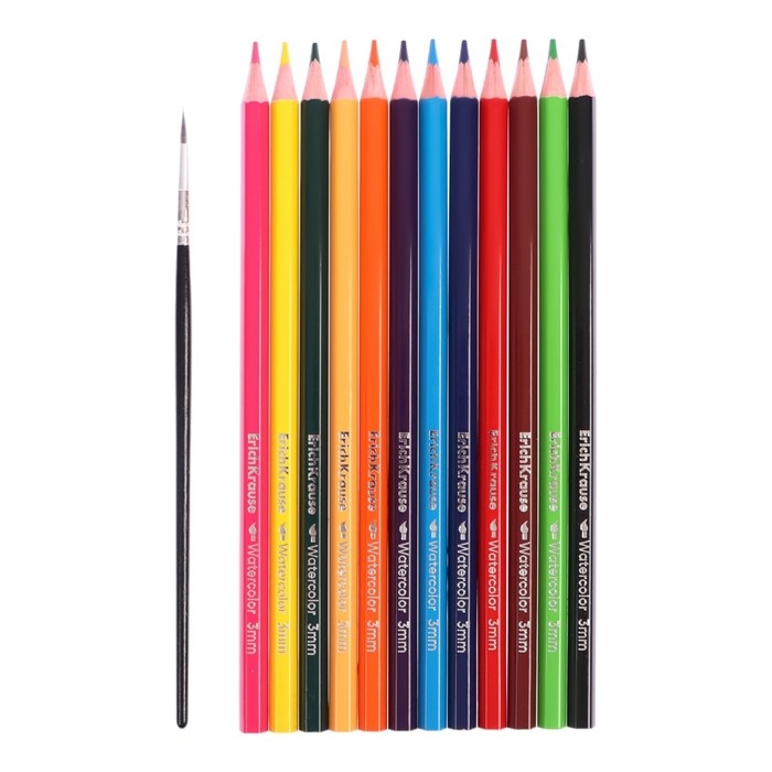 Акварельные шестигранные цветные карандаши из отборной древесины с суперярким грифелем. После нанесения на бумагу след от карандаша может быть использовн для создания акварельного эффекта при помощи воды и кисточки, входящей в комплект. Грифель диаметром 3 мм не царапает бумагу и не крошится при рисовании. Мягкая древесина и идеальная центровка грифеля гарантируют легкую заточку с экономным расходом карандаша.