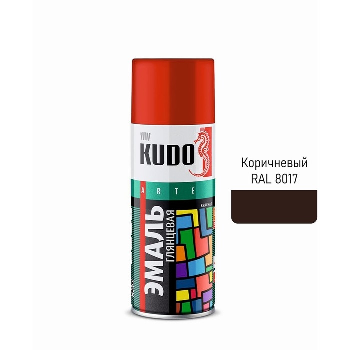 Аэрозольная краска эмаль KUDO универсальная коричневая RAL 8017, 520 мл