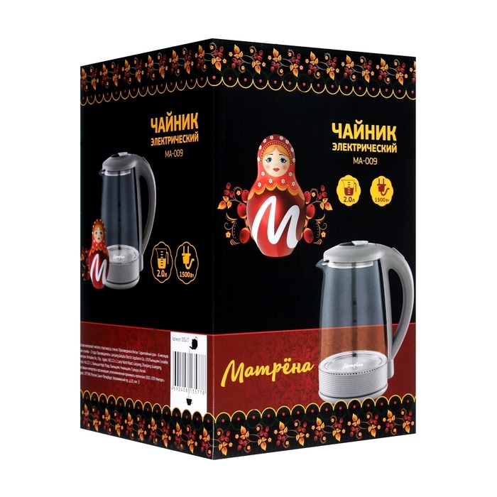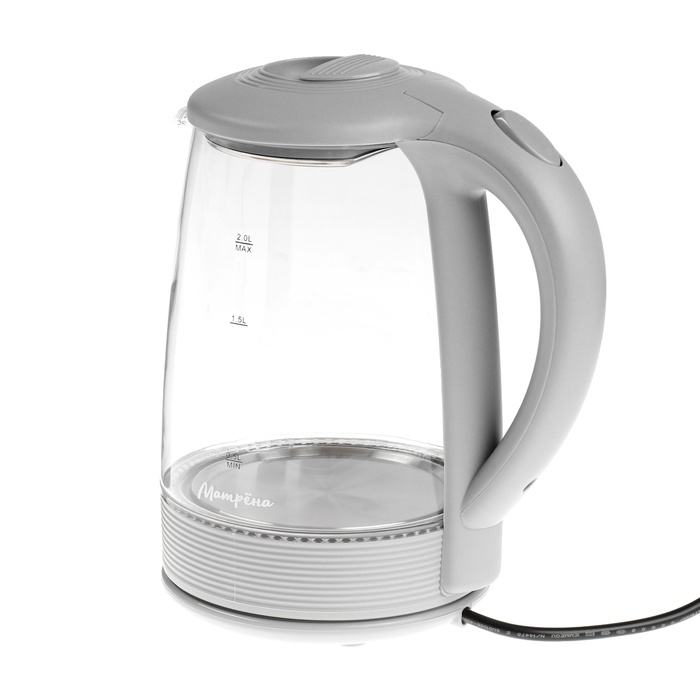 Чайник электрический "МАТРЁНА" MA-009, стекло, 2 л, 1500 Вт, серый