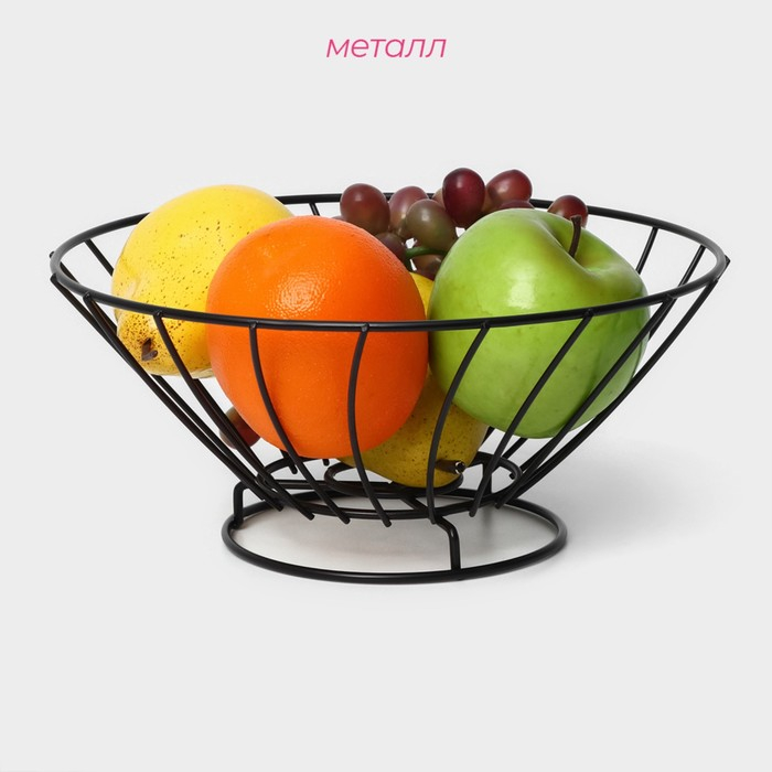 Фруктовница Доляна, 24,5×24,5×11 см, цвет чёрный