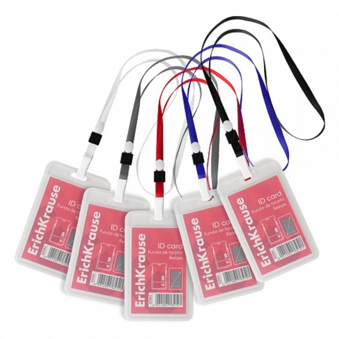 Бейдж вертикальный 54 х 85 мм, ErichKrause слайдер, прозрачный корпус, текстильная лента, цвет микс
