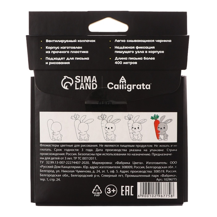 Фломастеры 12 цветов Calligrata "Капибарно", классические, картонный пенал