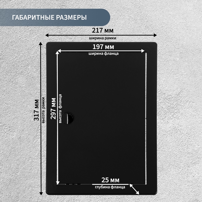 Ревизионный люк ZEIN изготовлен из прочного пластика черного цвета. Он обеспечивает легкий доступ к коммуникациям и инженерным системам, при этом гармонично вписываясь в интерьер.